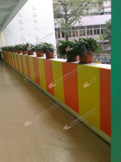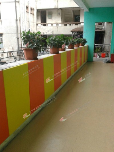 产品名称:广州杏花幼儿园黄橙色护栏保护垫,幼儿园软体墙壁软包,PVC软体墙垫